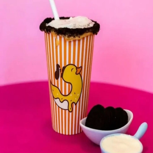Duck Oreo, Cobertura Crocante do Oreo em meio ao Choco Branco e riscas de Choco Ao Leite, uma delícia!