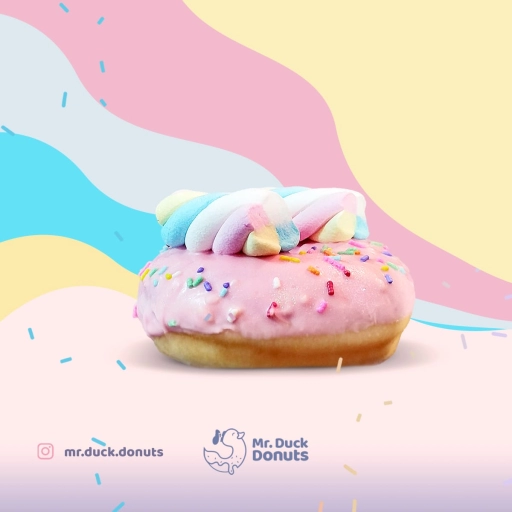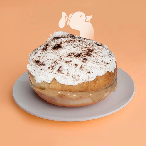 A massa de Donuts inconfundível do Mr. Duck, coberto com Açúcar de Confeiteiro e recheado com creme Bavarian - Donuts... Ver completo