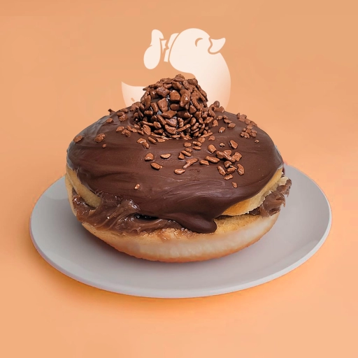 Nosso delicioso donut caseiro com uma cobertura de Chocolate Ao Leite e granulados por cima... Irresistível !